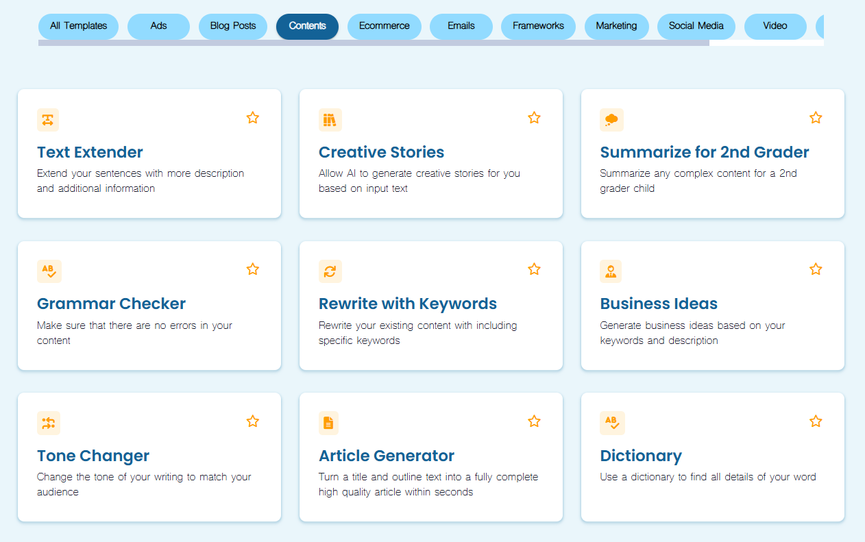 Geração de Artigos Dicas de Marketing Planos de negócios Gestão Financeira Personas Análise de Imagens Criador de ebooks Otimização de Conteúdo E muito mais!